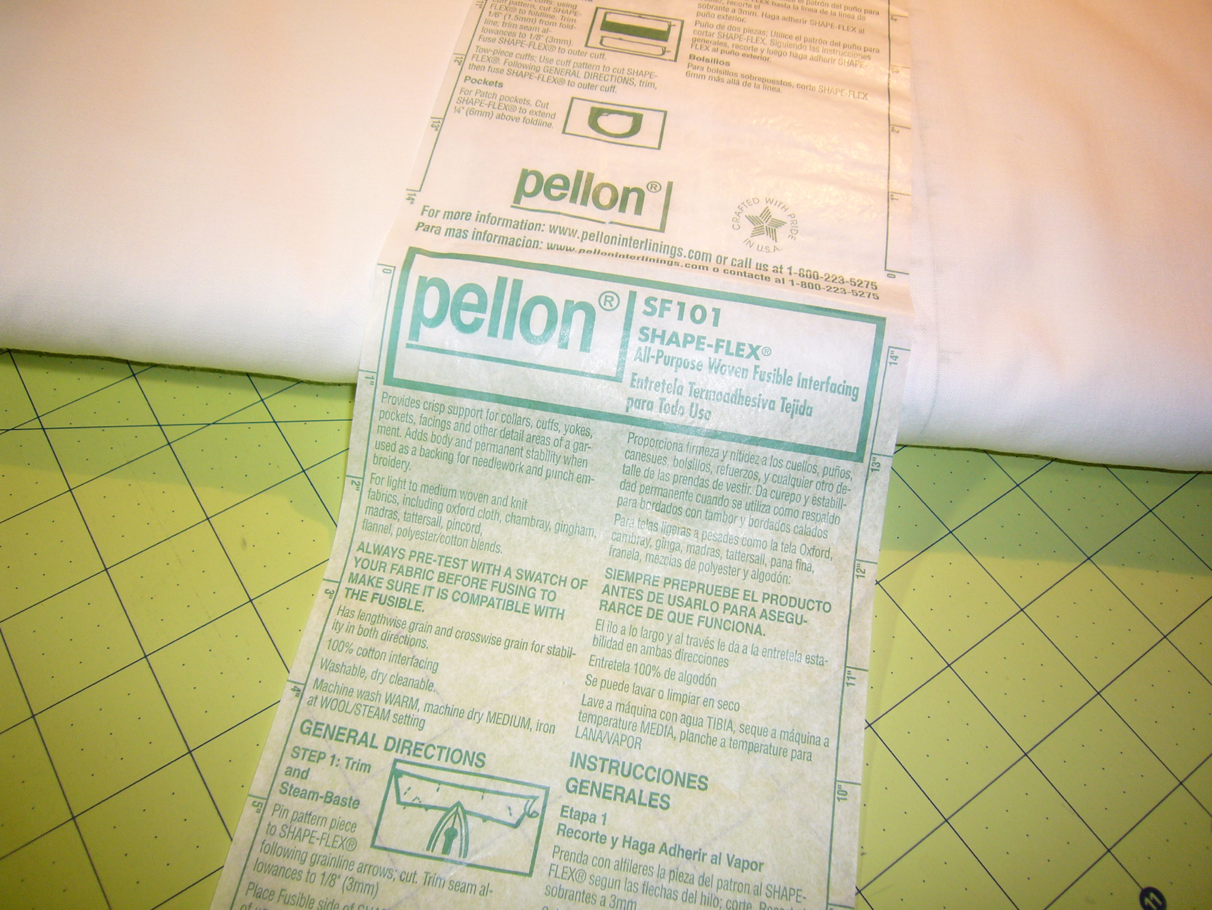 Pellon Woven Interfacing ← Previous Next → Iron woven fusible interfacing to the reverse side of the front and two back pieces