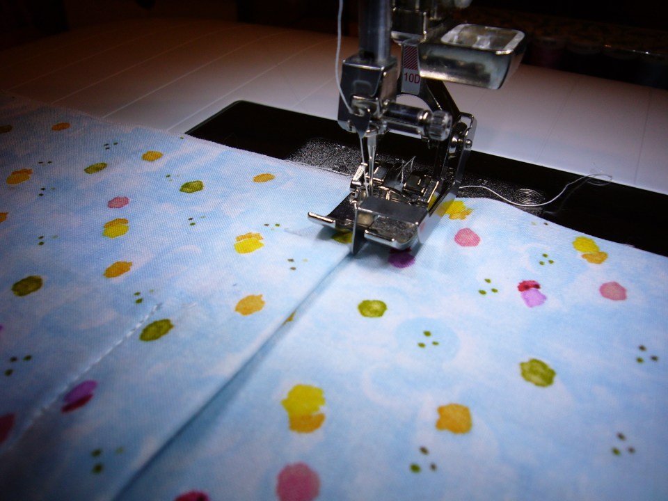Sew to back pieces together ← Previous Next → Sew the two back pieces together. Be sure to catch the edge of the piece on the bottom as it is narrow!