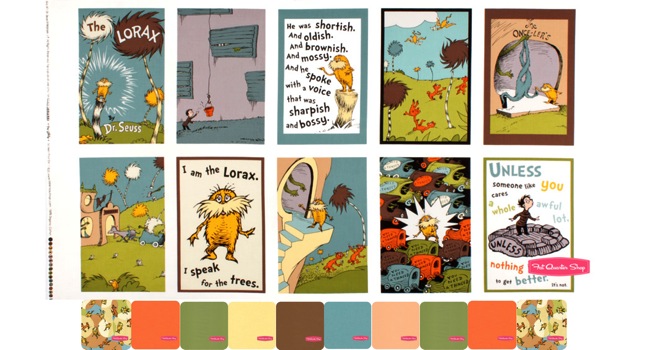 I have been putting a few quick quilts together to practice on my new quilt machine and I found myself at FatQuarterShop.com this morning looking at Dr. Seuss fabric panels.