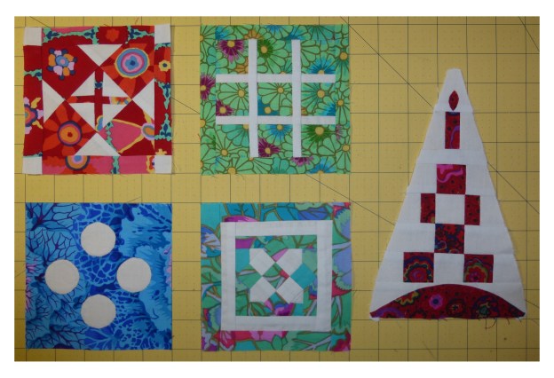 I also wanted to comment on this month’s triangle block.  Instead of appliqueing the curved piece on the bottom I decided to just sew it on with the machine because it is not much of a curve.  And I cheated with the little melon.  Yes, I did.  It is fused in place with steam a seam and machine stitched around the edges.  I think this will be just fine.  After all, this is a MODERN Dear Jane quilt, so I am using as many modern techniques as I can!