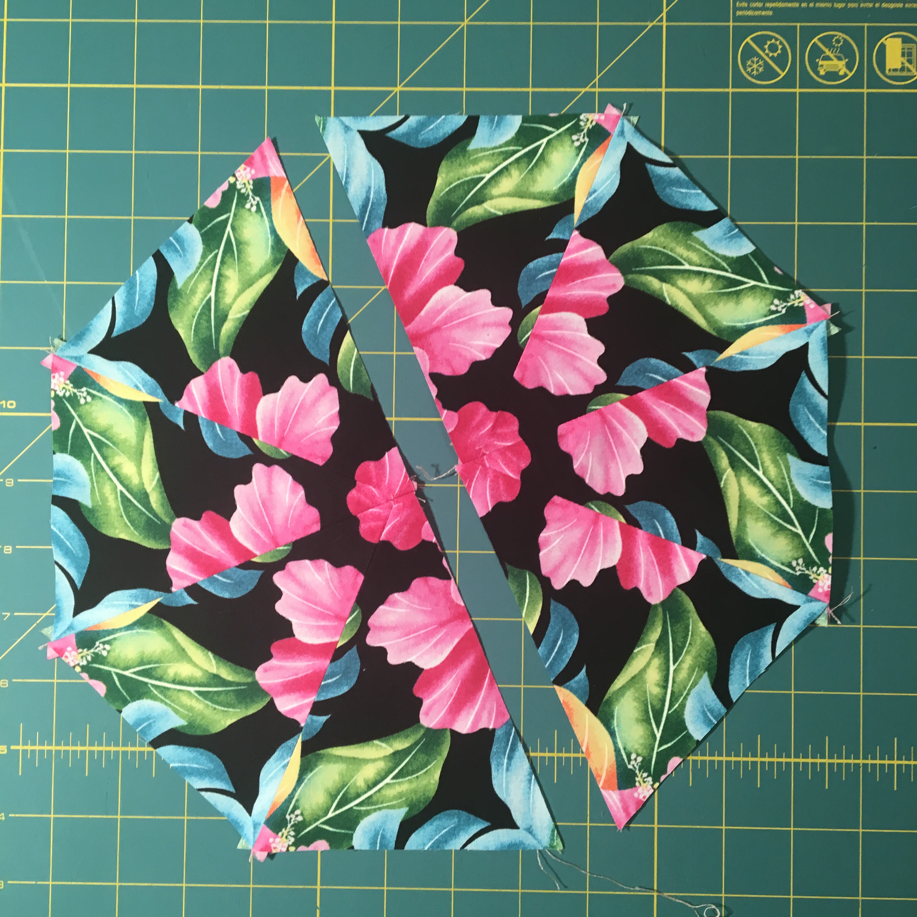 Next step is to sew your triangles together. First sew four pairs, then two pairs together and then the two halves together.