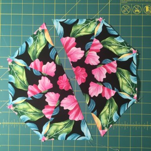 I like to look for fabrics with large prints that have different shapes and colors. You need to pay attention to the repeat of the design on the fabric. You can work with any repeat, but I have found that I like working with a 24″ repeat, which is usually pretty standard with the larger print fabrics.