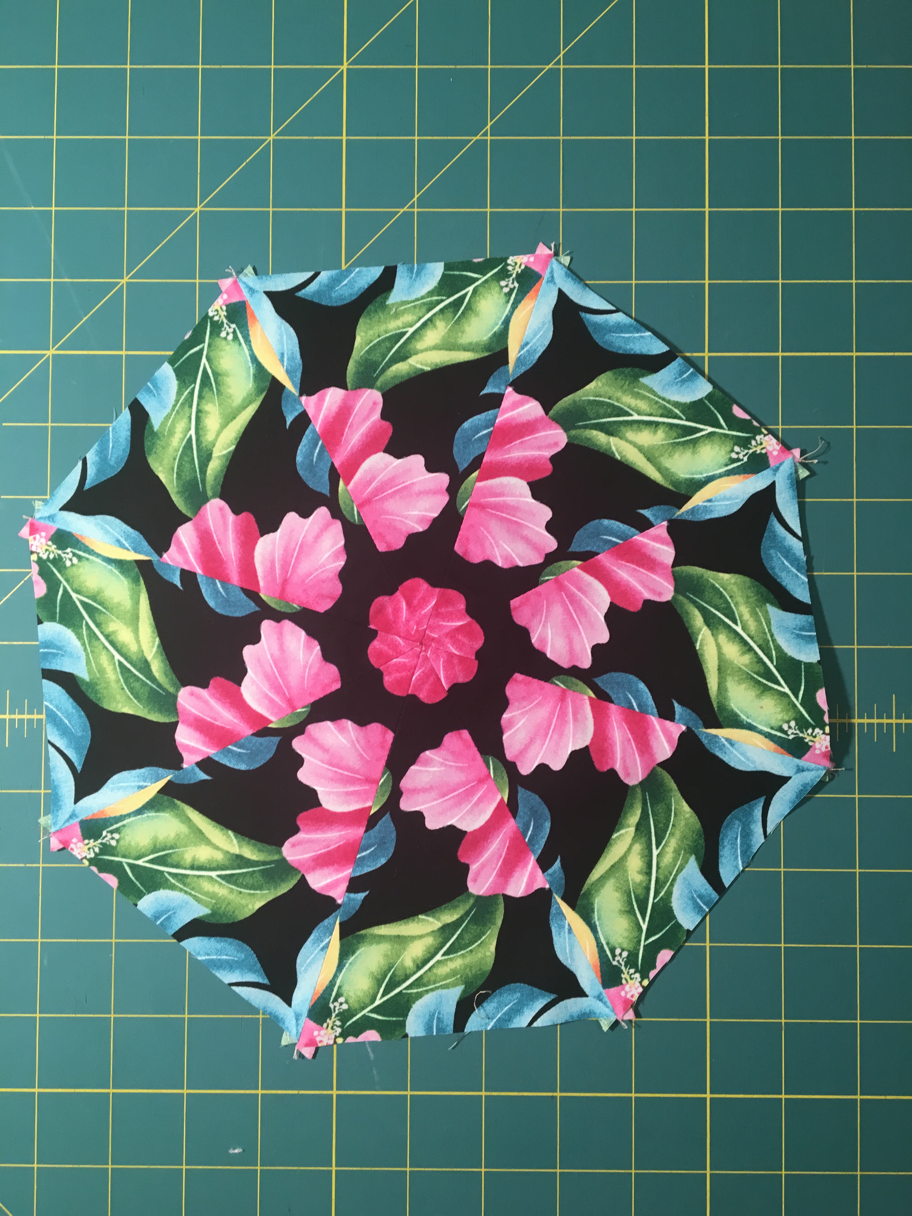 I have been having too much fun making kaleidoscope blocks lately. Every time I look at a fabric now I am wondering how well it might work for kaleidoscope blocks.