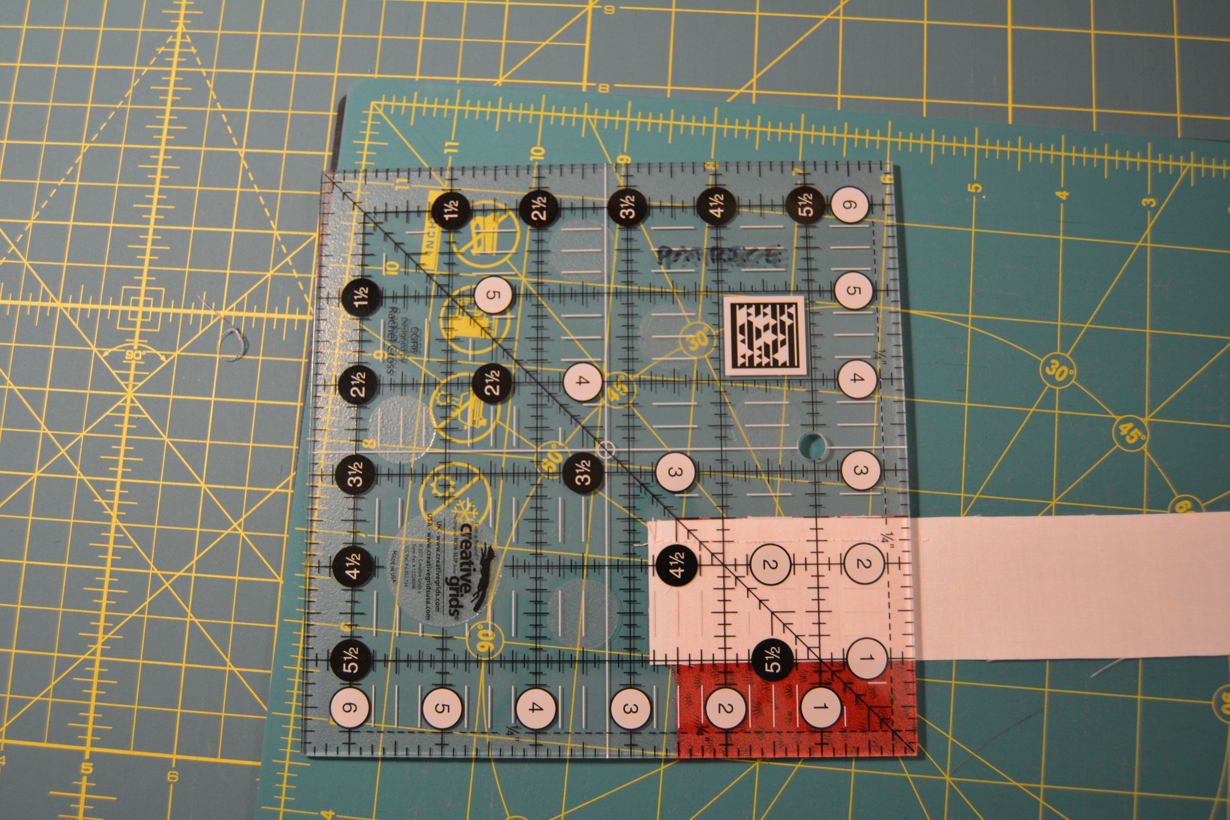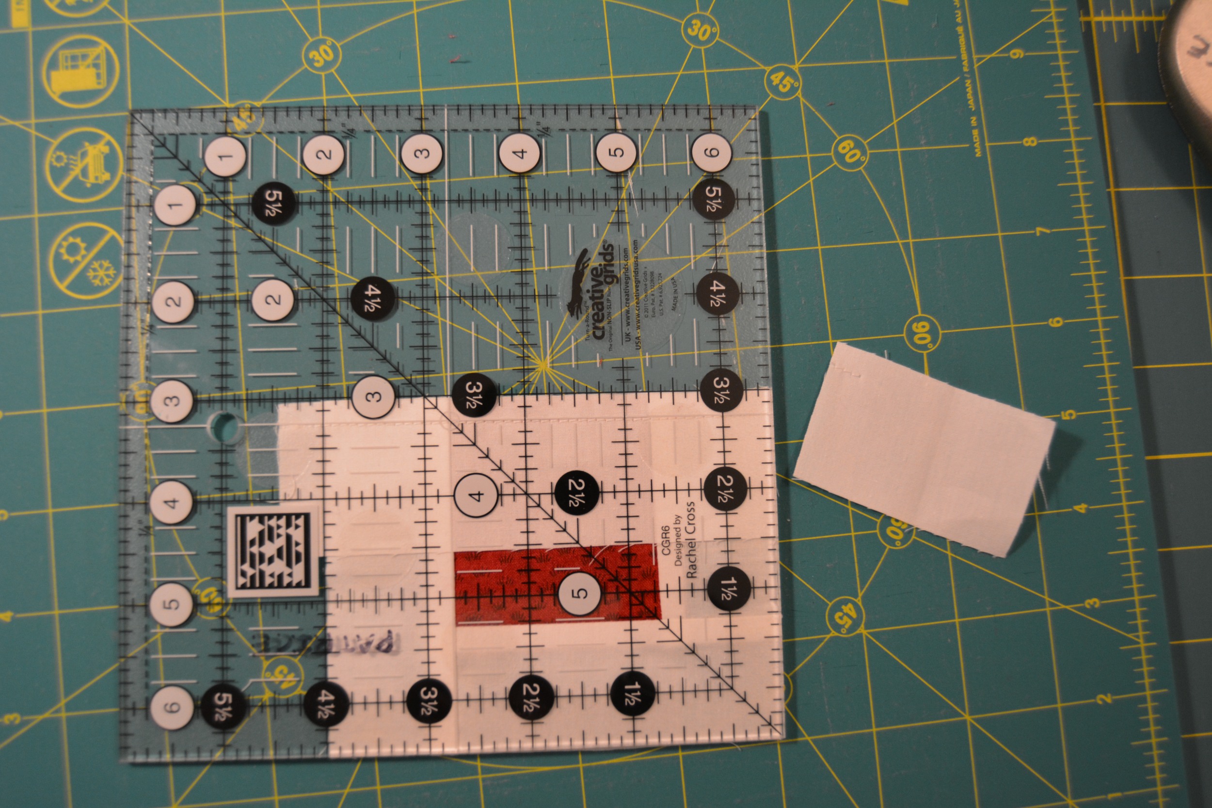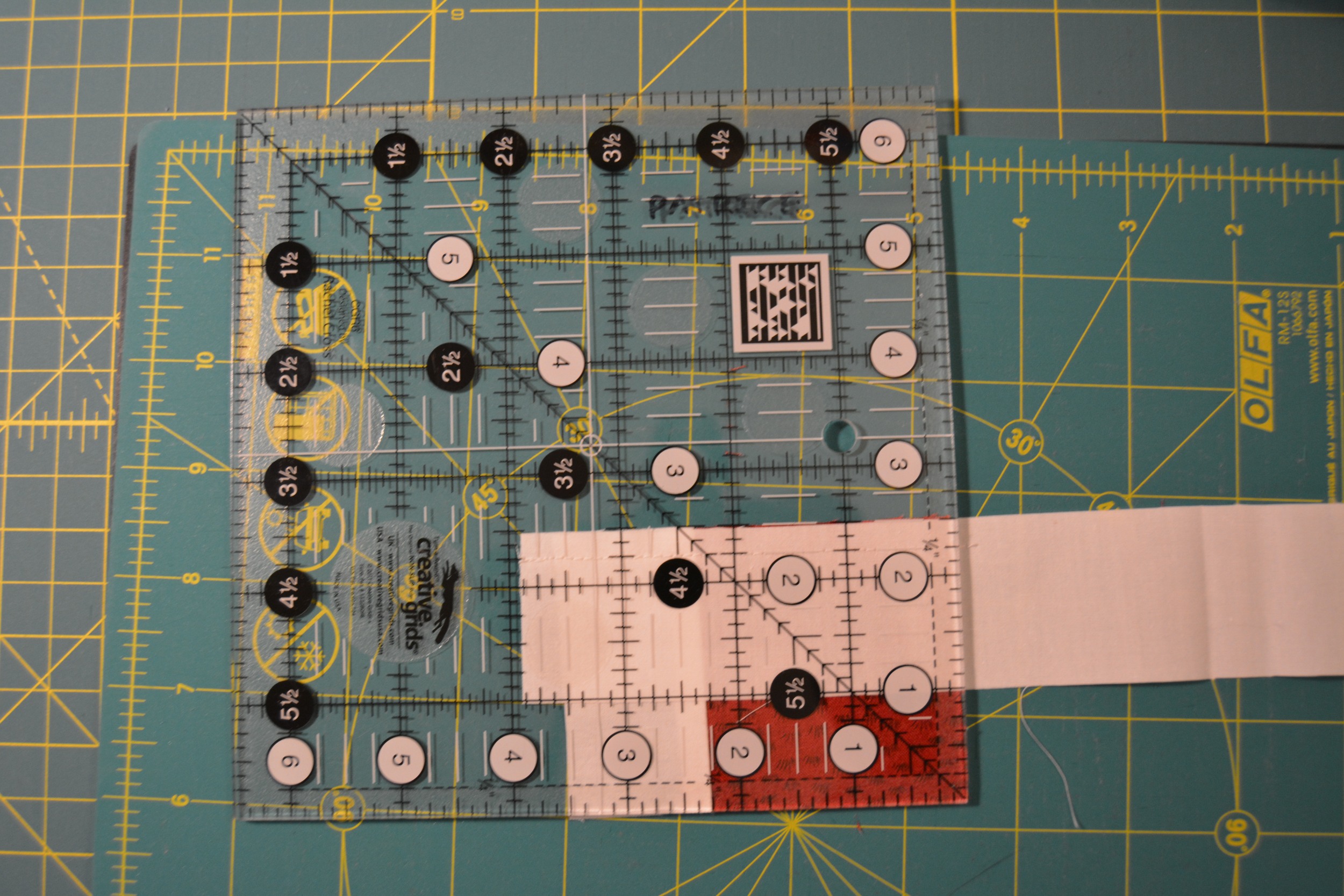 Don’t panic if you don’t have the square rulers. You can line the block up on your cutting mat to trim it!
