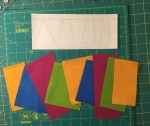 For a precise block start with two horizontal lines that are parallel and 2.5″ apart. Draw your seam lines 1/4″ from the edges of the paper. Then measure and mark the horizontal lines every 2″s. Start the marks at 1″ in from the seam line on one horizontal line and 2″ on the other to offset them. Then draw lines connecting these marks from one horizontal line to the other to make triangle sections.