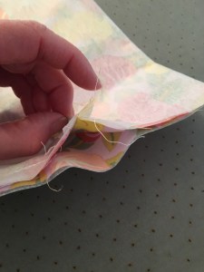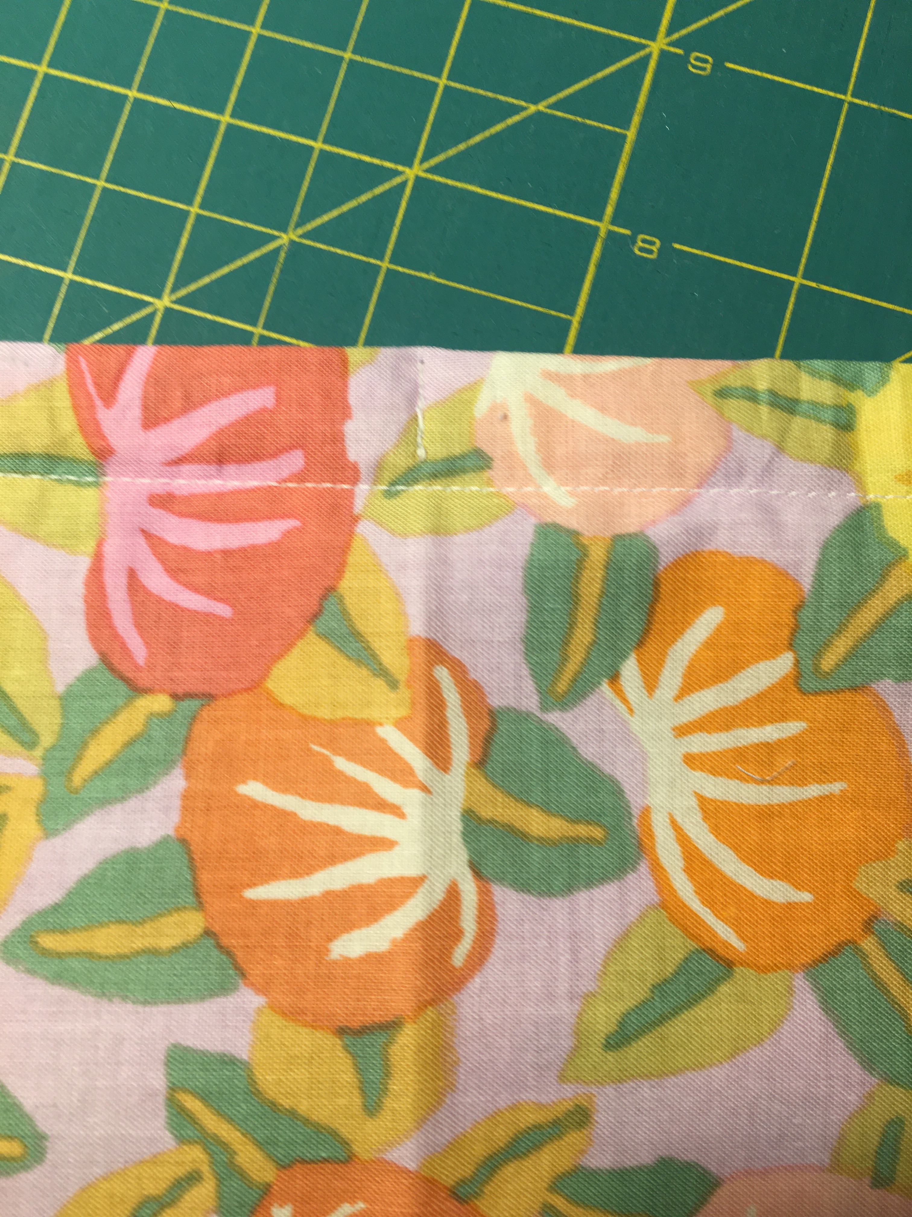Next sew the drawstring channels. Sew 5/8″ away from the long edge to do this. Secure all seams.