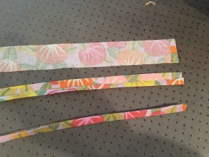 Cut 2 pieces 1 1/2″ x width of the fabric (42″)