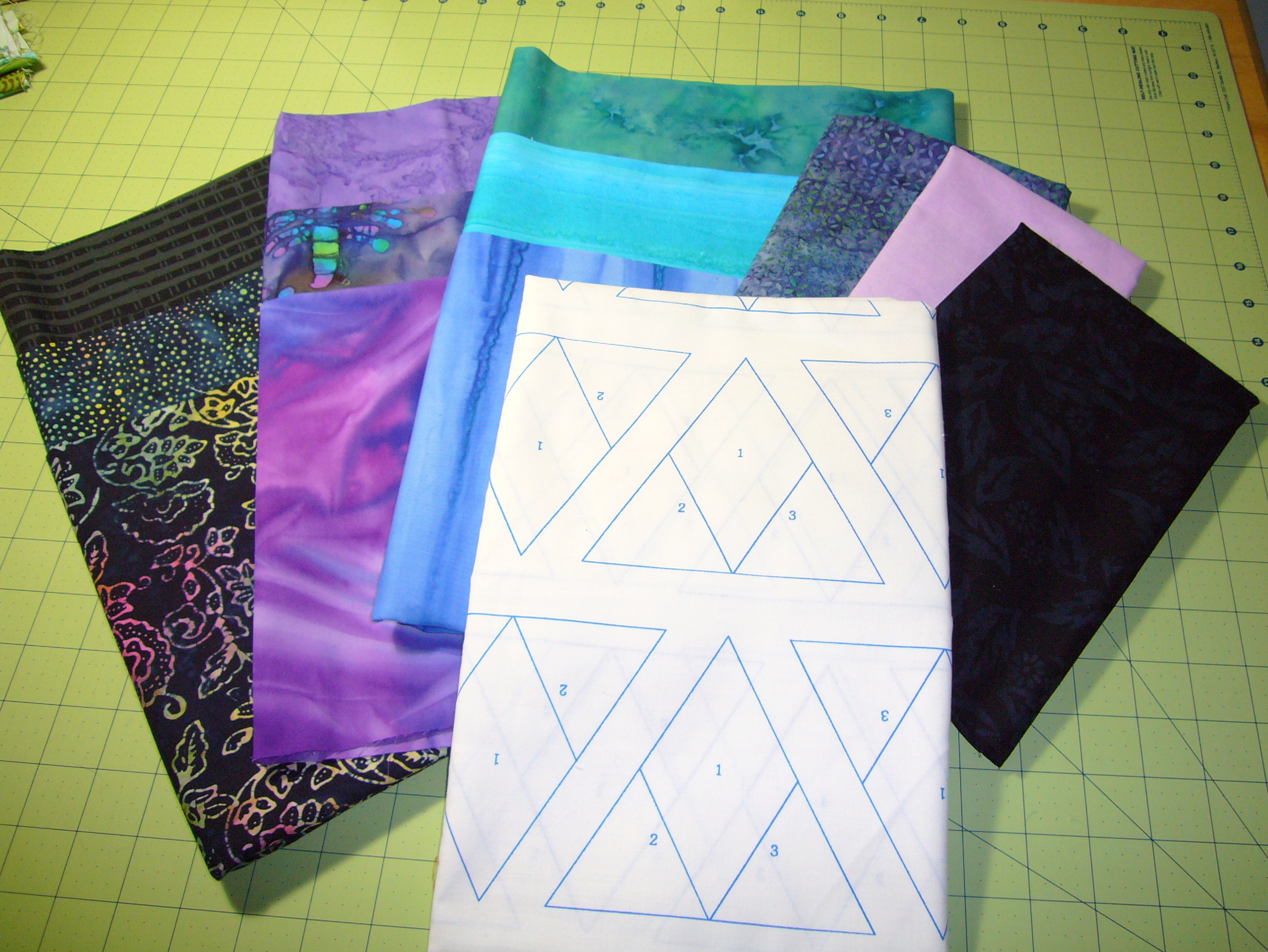 Seven Sisters – This is the same pattern as the Star Quilt, but I am going to do this as a Seven Sisters quilt, with the 7 stars in the middle in blue and the others in purple.